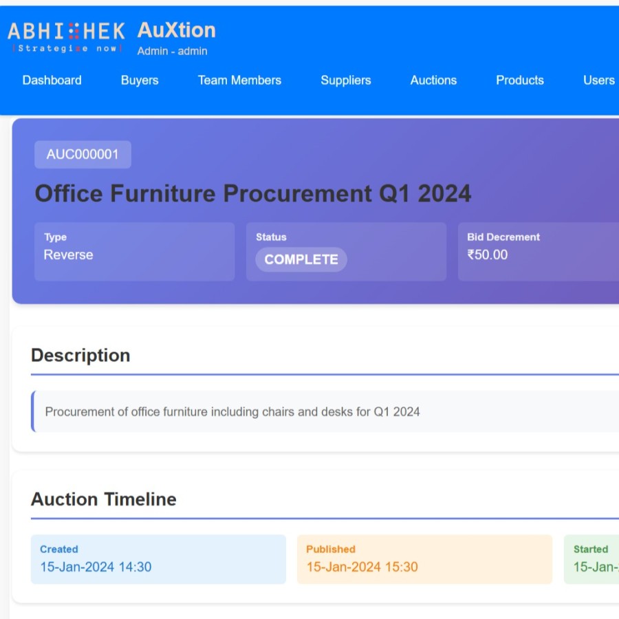 Experience the power of a cutting-edge SaaS platform designed for conducting online auctions, both Forward and Reverse.