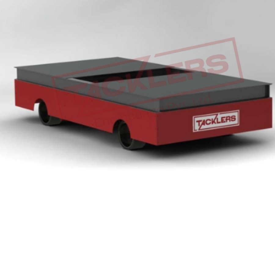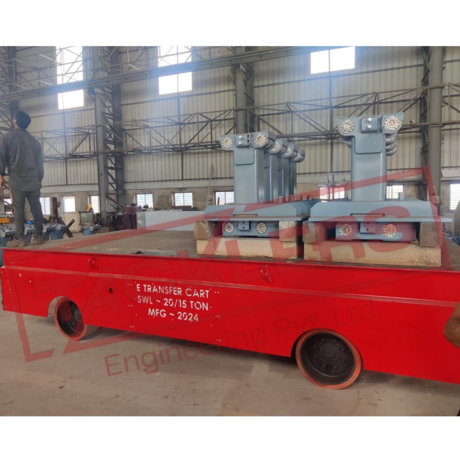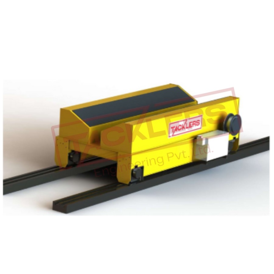 Heavy-duty transfer trolley designed for transporting materials across industrial facilities. Constructed from high-grade steel, with load capacities ranging up to 100 tons. Options include rail-guided or steerable versions, battery-operated or manual, and customizable platforms to suit application-specific requirements.