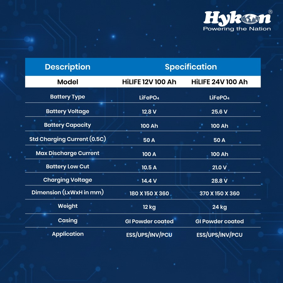 Hykon HiLIFE 12V 100Ah LiFePO4 Battery